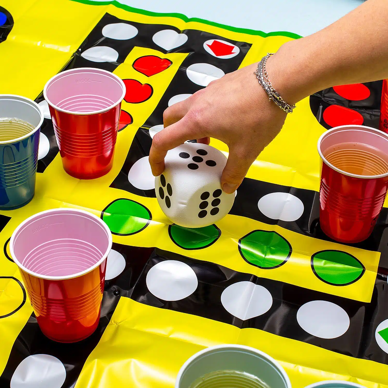Ob im Urlaub, beim Trinken oder einfach am Dienstagabend im Studentenwohnheim: Das XXL Ludo Trinkspiel mit Plastikbechern von Out of the Blue macht immer Spaß. Und wenn du verlierst, ist es nicht so schlimm, denn das Getränk ist deine Belohnung.