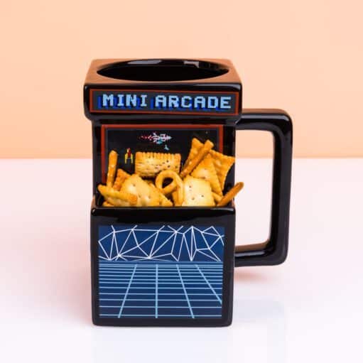 Warum Kaffee aus einer gewรถhnlichen Tasse trinken, wenn Sie ihn auch aus einem altmodischen Arcade-Spiel trinken kรถnnen? Ok, wir wissen, dass dies eine schwierige Frage ist. Wenn Sie immer noch zittern oder denken: Wie? Dann werfen Sie einen Blick auf die XXL Retro Arcade Tasse von Out of the Blue.Diese einzigartige Tasse sieht aus wie ein Arcade-Spiel, ist aber viel kleiner! Obwohl… mit einem Fassungsvermรถgen von 930 Millilitern kann man diesen Becher sicherlich nicht als klein bezeichnen.