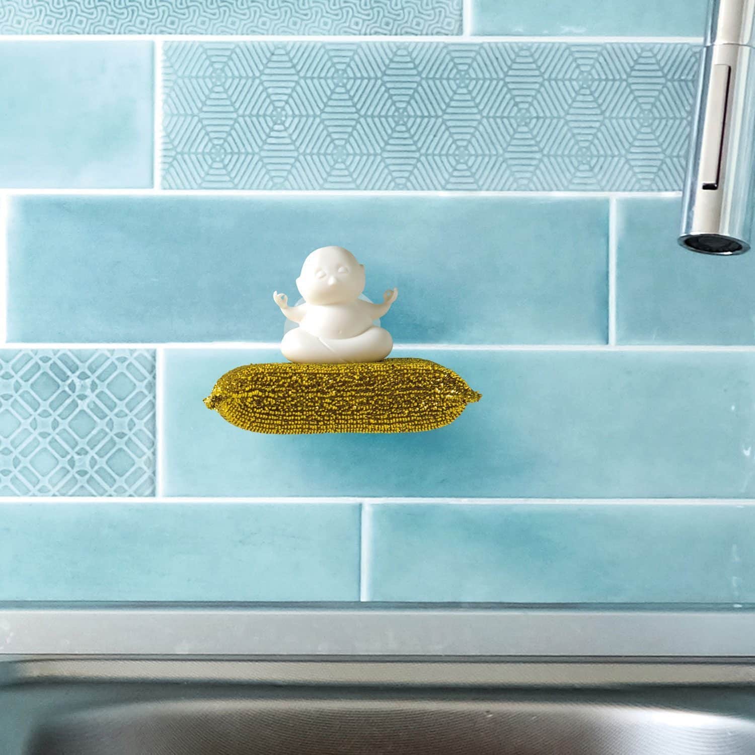 Ja, der Abwasch. Was soll man dazu sagen? Schรถn, wenn er wieder erledigt ist, oder? Dann kannst du dich mit einer entspannten Stunde belohnen. Und den nassen Schwamm, den du benutzt hast? Den hรคngst du einfach zum Trocknen ins Spรผlbecken oder an die Kรผchenwand. Natรผrlich auf den Yogi Schwammhalter! Dieser Schwammhalter von Peleg Design sieht aus wie ein Yogi auf einem goldfarbenen Kissen, das in Wirklichkeit ein goldener Schwamm ist. Der Halter ist mit einem Saugnapf am Spรผlbecken befestigt und der Schwamm wird unter den Yogi geschoben. So muss der nasse Schwamm nicht auf der Arbeitsplatte abtropfen. Praktisch und schรถn.