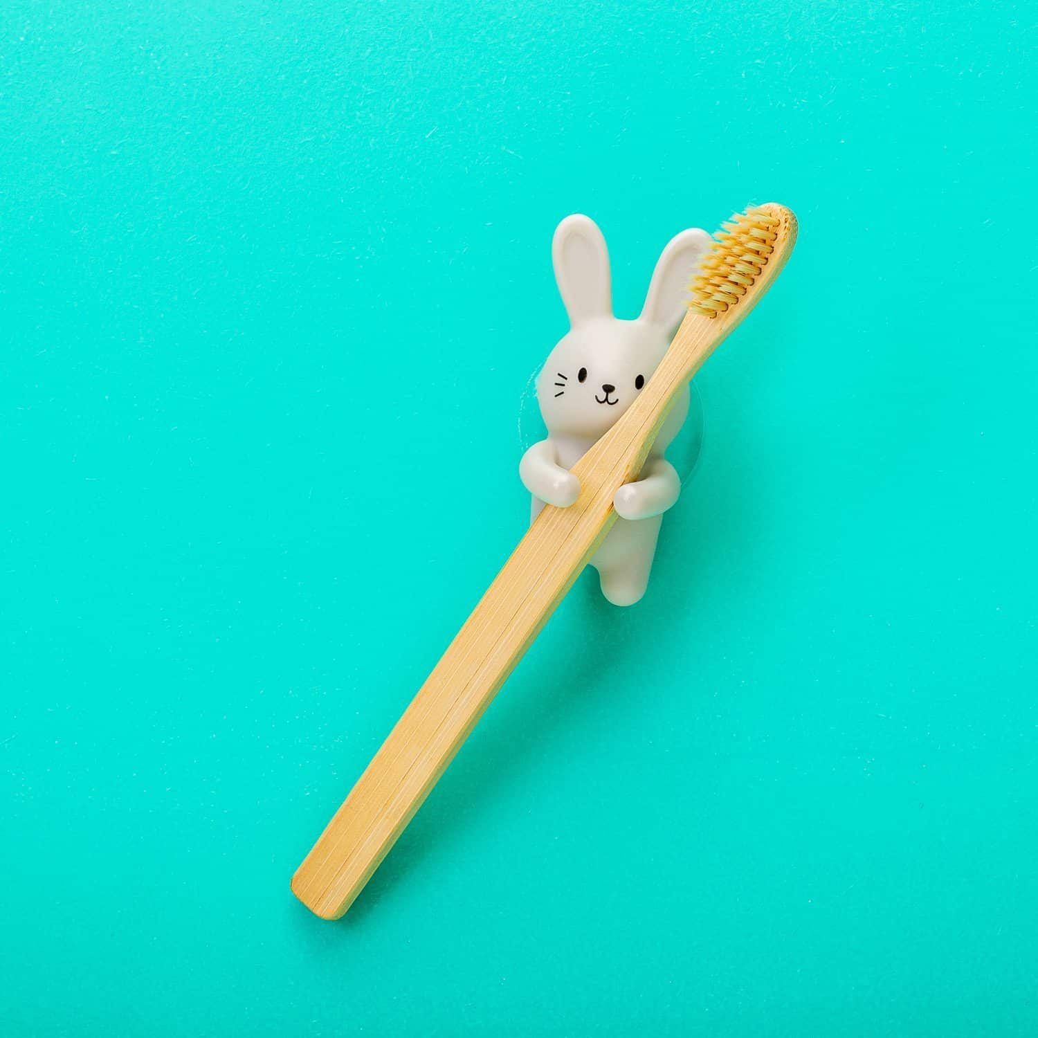 Wenn du ein aufgeräumtes Zuhause liebst, verwende den Zahnbürstenhalter von Kikkerland. Diese Zahnbürstenhalter können von Kindern benutzt werden, um ihre Zahnbürsten aufzubewahren. Das Tier hält die Zahnbürste zwischen seinen Pfoten. Du steckst die Zahnbürste in den Halter und hängst ihn mit dem Saugnapf auf der Rückseite an den Spiegel oder eine glatte Wandfliese. So hast du immer einen festen Platz und musst keine Zahnbürsten in einem Becher auf deinem Waschbecken aufbewahren. Außerdem helfen Kinder so gerne beim Aufräumen ihrer eigenen Sachen.