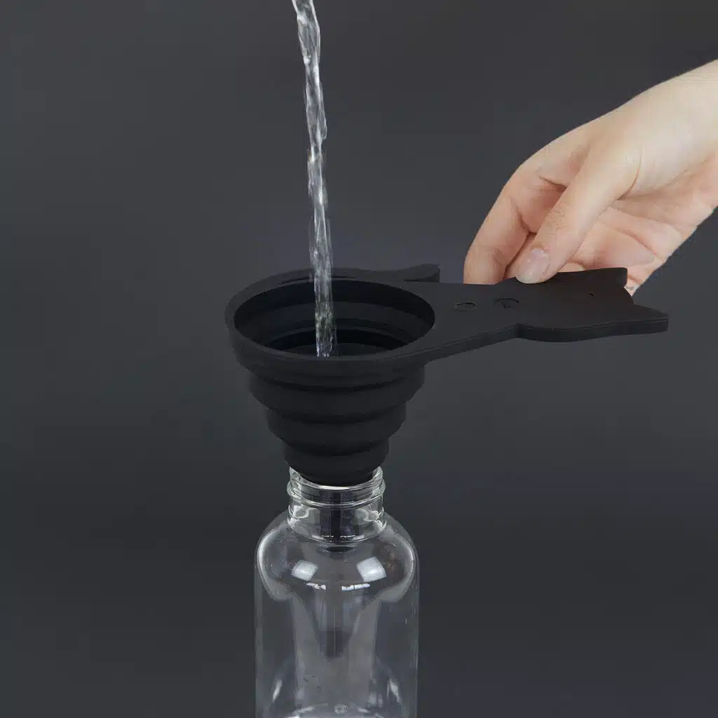 Meow! Der Zusammenklappbare Katzen-Trichter von Balvi ist ein zusammenklappbarer Trichter in Form einer Katzensilhouette mit erhabenen Details auf Nase und Schnurrhaaren. Er ist zusammenklappbar und kompakt, also ideal für das kleckerfreie Umfüllen von Flüssigkeiten, ohne dass er viel Platz wegnimmt. Mit Magnet auf der Rückseite kannst du ihn am Kühlschrank oder jeder Metalloberfläche aufhängen. Ein praktisches Geschenk für Katzenliebhaber!